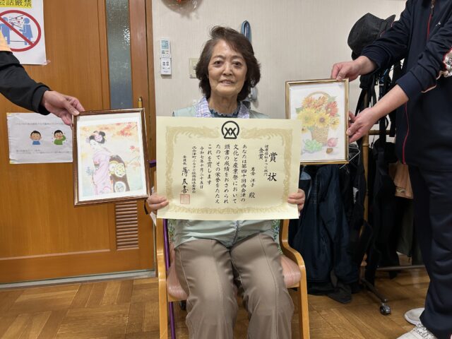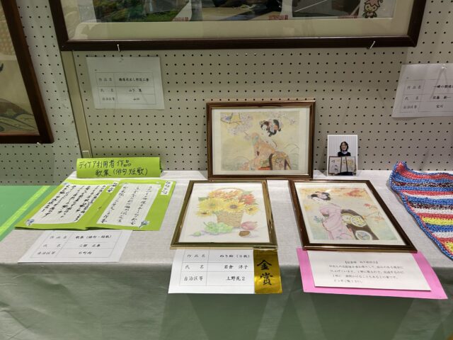 「憩の森」通所リハビリテーションは、西会津ふるさとまつりに『ちぎり絵』と、個人作品で『ぬり絵』と『俳句・短歌』を出展しました。個人作品のぬり絵は見事『金賞』を受賞されました。